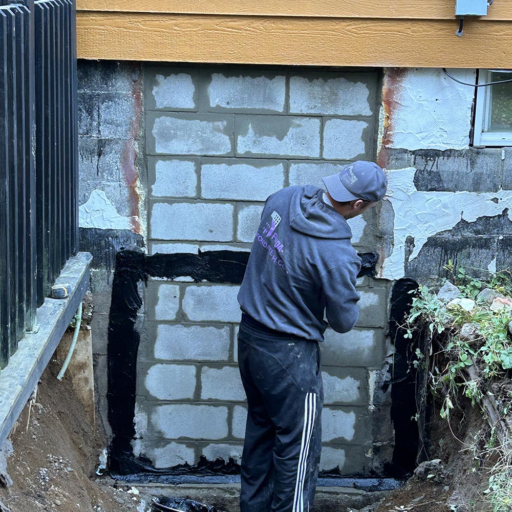 Lorsqu’une intervention extérieure est nécessaire, notamment en présence d’infiltration ou de dégradation visible du béton, les travaux commencent généralement à partir de 750$, selon l’accès au mur et les conditions du terrain.